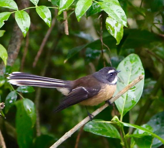 | Keywords: birds fantails new zealand newzealand nature feathers outdoors animals insects leaf free brown outdoor animal bird Another of our Native favoured birds, this delightful sprightly bird, flitters quickly around bushes , looking for small insects , they will often follow walkers through forest tracks, awaiting for us to disturb the local insect populations so they can easily feed. The New Zealand fantail (Rhipidura fuliginosa) is a small insectivorous bird. A common fantail found in the South Island of New Zealand, also in the North Island as subspecies Rhipidura fuliginosa placabilis, the Chatham Islands as Rhipidura fuliginosa penita and formerly (now extinct) the Lord Howe Island as Rhipidura fuliginosa cervina. Also known as the pied fantail (pied morph only) or by its Maori name, Pīwakawaka or Tīwakawaka. The species is considered by many to be conspecific (the same) as the grey fantail of Australia and New Caledonia,[2] however due to differences in its calls some authorities now treat it as a separate species.[3] Another of our Native favoured birds, this delightful sprightly bird, flitters quickly around bushes , looking for small insects , they will often follow walkers through forest tracks, awaiting for us to disturb the local insect populations so they can easily feed. The New Zealand fantail (Rhipidura fuliginosa) is a small insectivorous bird. A common fantail found in the South Island of New Zealand, also in the North Island as subspecies Rhipidura fuliginosa placabilis, the Chatham Islands as Rhipidura fuliginosa penita and formerly (now extinct) the Lord Howe Island as Rhipidura fuliginosa cervina. Also known as the pied fantail (pied morph only) or by its Maori name, Pīwakawaka or Tīwakawaka. The species is considered by many to be conspecific (the same) as the grey fantail of Australia and New Caledonia,[2] however due to differences in its calls some authorities now treat it as a separate species.[3] |