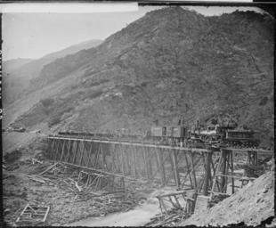 Keywords: The Devil's Gate Bridge. Summit County, Utah - NARA - 516645.jpg Scope and content General notes 516645 Local identifier 57-HS-38 Department of the Interior General Land Office U S Geological and Geographic Survey of the Territories 1874 - 06/30/1879 NARA-Author Jackson William Henry 1843-1942 Photographer 1116078 <br /> Still Picture Records Section Special Media Archives Services Division NWCS-S National Archives at College Park 8601 Adelphi Road College Park MD 20740-6001 1869 Record group Record Group 57 Records of the U S Geological Survey 1839 - 2008 Record group ARC 386 Hayden Survey William H Jackson Photographs compiled 1869 - 1878 Series ARC 516606 File unit File unit ARC Variant control numbers NAIL Control Number NWDNS-57-HS-38 Other versions <gallery> File The_Devil's_Gate_Bridge _Summit_County _Utah_-_NARA_-_516645 tif tif File The_Devil's_Gate_Bridge _Summit_County _Utah_-_NARA_-_516645 jpg jpg </gallery> NARA-cooperation PD-USGov Weber Canyon Railway bridges in Utah Wooden railway bridges Black and white photographs of Utah NARA images of Utah Wooden trestle bridges in the United States 1869 in Utah |