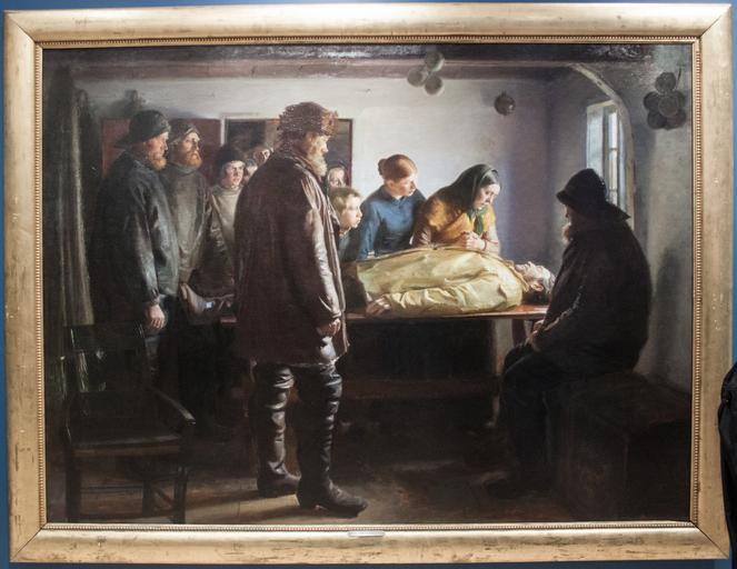Keywords: The drowned fisherman, by Michael Ancher, with frame.jpg Artwork Creator Michael Ancher 1896 oil on canvas Institution Skagens Museum object history Depositum fra Statend Museum for Kunst credit line own photo by Szilas in Skagens Museum Other versions Commonist PD-old Cc-zero Paintings by Michael Ancher in Skagens Museum Fishermen by Michael Ancher
