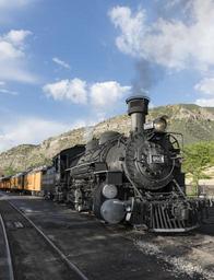 Keywords: The Durango & Silverton Narrow Gauge Railroad (D&SNG) is powered up and ready to leave the Durango, Colorado, station LCCN2015632655.tif 1 photograph digital tiff file color Notes The D SNG is a narrow-gauge railroad that operates 45 2 miles of track between Durango and Silverton in southwest Colorado The route was originally opened in 1882 by the Denver Rio Grande Railway to transport silver and gold ore mined from the San Juan Mountains The line has run continuously since 1881 and some rolling stock dates to then It is now strictly a tourist and heritage line hauling passengers and is one of the few places in the United States that has seen continuous use of steam locomotives In March 1981 the Denver Rio Grande Western sold the line and the D SNG was formed Trains operate from Durango just 26 miles into the mountains in winter months and the full 45 miles to Silverton during warmer months ; Purchase; Carol M Highsmith Photography Inc ; 2015; DLC/PP-2015 068 ; Forms part of Gates Frontiers Fund Colorado Collection within the Carol M Highsmith Archive ; Credit line Gates Frontiers Fund Colorado Collection within the Carol M Highsmith Archive Library of Congress Prints and Photographs Division ; Title date and keywords based on information provided by the photographer 2015 Creator Carol M Highsmith Library of Congress Catalog http //lccn loc gov/2015632655 Image download https //cdn loc gov/master/pnp/highsm/32600/32640a tif Original url http //hdl loc gov/loc pnp/highsm 32640 No known restrictions on publication LOC-image highsm 32640 37 23 9331 0 N 107 48 9072 0 W alt 0_source exif_heading PD-Highsmith Images uploaded by Fæ Gates Frontiers Fund Colorado Collection within the Carol M Highsmith Archive Durango and Silverton Narrow Gauge Railroad trains Gates Frontiers Fund Colorado Collection within the Carol M Highsmith Archive Library of Congress Prints and Photographs Division Photographs by Carol M Highsmith |