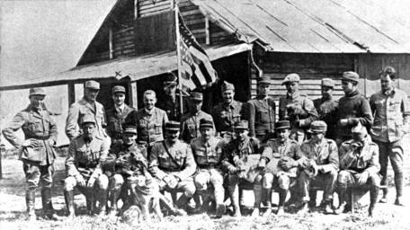 | Keywords: The Escadrille Lafayette in July 1917.jpg  en The pilots of SPA 124 Escadrille Lafayette on 10 July 1917 at Chaudun France Standing left to right are Robert Soubiron James Doolittle Courtney Campbell Edwin Parsons Ray Bridgman William Dugan Douglas MacMonagle Walter Lowell Harold Willis Henry Jones David Peterson and Antoine de Maison-Rouge French Deputy Commander Seated left to right are Dudley Hill Didier Masson with Soda William Thaw Georges Thenault the French Commander Raoul Lufbery with Whiskey 'Chute' Johnson Stephen Bigelow and Robert L Rockwell A historic image provided by the U S Air Force 1917-07-10 http //www nationalmuseum af mil/shared/media/photodb/photos/050405-F-1234P-018 jpg<br/>at USAF fact sheet<br>http //www nationalmuseum af mil/shared/media/photodb/photos/050405-F-1234P-018 jpg Unknown or not provided PD-USAF PD-USGov Uploaded with UploadWizard Escadrille la Fayette Gervais Raoul Lufbery Walter Lovell Ž William Thaw II Ž Georges Thenault Ž |