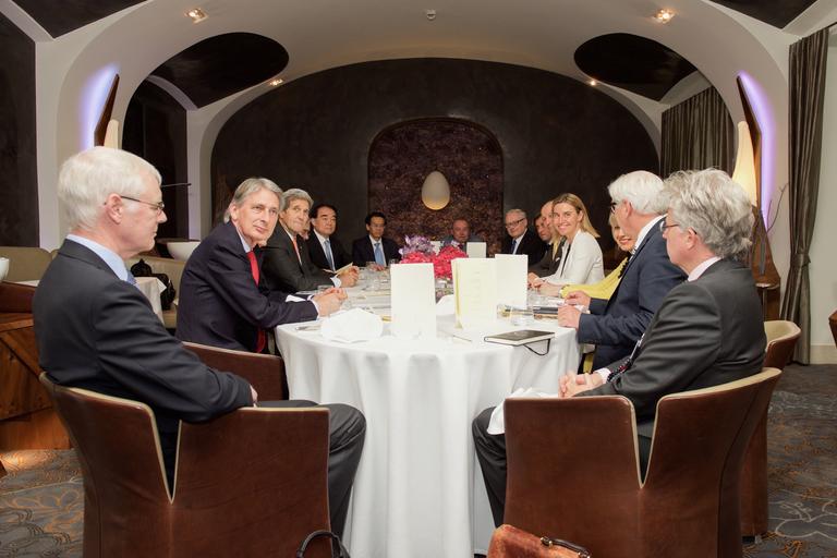 Keywords: The First Meeting of the E.U. and P5+1 Group.jpg en The first meeting of the E U and P5+1 group with Secretary Kerry British Foreign Secretary Philip Hammond French Foreign Minister Laurent Fabius and German Foreign Minister Frank-Walter Steinmeier along with deputies to Chinese Foreign Minister Wang Yi and Russian Foreign Minister Sergey Lavrov who had yet to arrive took place on June 28 2015 during a working lunch at the Palais Coburg hotel The big group meetings were convened by Federica Mogherini the former Foreign Minister of Italy who now serves as the European Union ™s High Representative for Foreign Affairs State Department photo/ Public Domain 2015-06-28 08 13 44 http //www flickr com/photos/9364837 N06/19477225768/ U S Department of State other versions 48 203854 16 366882 PD-USGov PD-USGov Uploaded with UploadWizard Relations of Iran and the United States |
