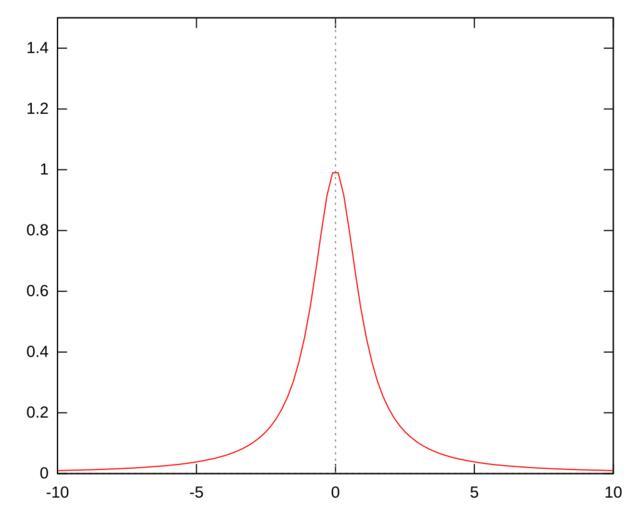 | Keywords: The function 1 over 1+x^2.svg en The function f x 1/ 1+x² de Die Funktion f x 1/ 1+x² 2015-02-08 own Stephan Kulla other versions v set terminal svg set output 'function svg' set zeroaxis set yrange 0 1 5 set xrange -10 10 plot 1/ 1+x 2 notitle cc-zero Uploaded with UploadWizard Rational functions |