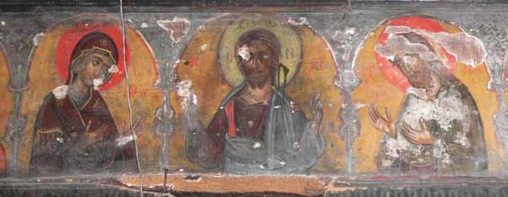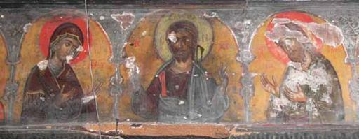 | Keywords: The Great Deesis, Leskoec 01.jpg en Fresco The Great Deesis in the Church of the Ascension of Jesus in Leskoec Macedonia mk Големиот Деисис ф еска во ц квата Св Спас во ох идското село Лескоец http //www kalamus com mk/pdf_spisanija/patrimonium_3/021 20- 2025 20Spisanie 202010 20VIKI 2005 20ok pdf Ох идско-ст ушки иконописни т аги од вто ата половина на 15 век author 1462 PD-Macedonia The Great Deesis Leskoec | ||||