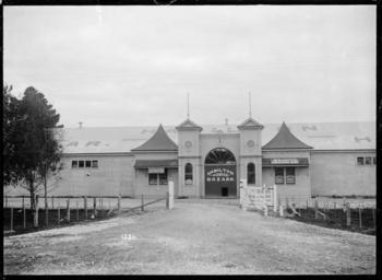 Keywords: blackandwhite monochrome outdoor architecture building photo border black and white The building of the Hamilton Horse Bazaar, with offices of two land and estate agents. Offices of S J Bullock on the left of the front doors, and offices of S G Jeffs on the right. Photograph taken by William Archer Price, probably in 1909 (the only year listed in Wise's Post office Directory where both Bullock and Jeffs have their businesses in Hamilton). Inscriptions: Inscribed - Photographer's title on negative -bottom left: 1336. Quantity: 1 b&w original negative(s). Physical Description: Dry plate glass negative 6.5 x 4.5 inches The Hamilton Horse Bazaar, circa 1909. Price, William Archer, 1866-1948 :Collection of post card negatives. Ref: 1/2-001830-G. Alexander Turnbull Library, Wellington, New Zealand. natlib.govt.nz/records/22890037 The building of the Hamilton Horse Bazaar, with offices of two land and estate agents. Offices of S J Bullock on the left of the front doors, and offices of S G Jeffs on the right. Photograph taken by William Archer Price, probably in 1909 (the only year listed in Wise's Post office Directory where both Bullock and Jeffs have their businesses in Hamilton). Inscriptions: Inscribed - Photographer's title on negative -bottom left: 1336. Quantity: 1 b&w original negative(s). Physical Description: Dry plate glass negative 6.5 x 4.5 inches The Hamilton Horse Bazaar, circa 1909. Price, William Archer, 1866-1948 :Collection of post card negatives. Ref: 1/2-001830-G. Alexander Turnbull Library, Wellington, New Zealand. natlib.govt.nz/records/22890037 |