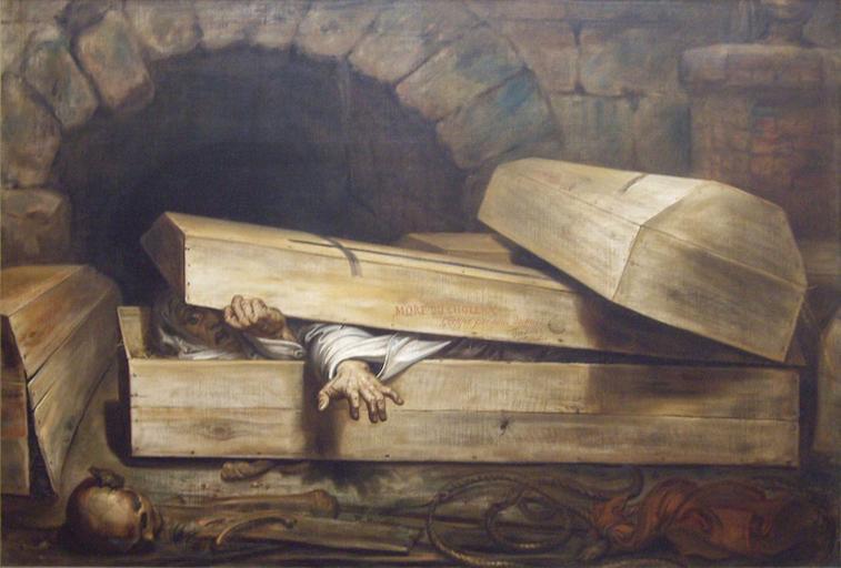 | Keywords: The Hasty Burial.jpg Artwork Creator Antoine Wiertz Elsietett temetés The Premature Burial L'inhumation précipitée Il sepolto vivo 1854 oil on canvas cm 160 235 Musée Wiertz Brussels place of discovery object history exhibition history credit line MORT DU CHOLERA / Certifié par nous Docteurs / Sandoutes text center fr accession number 1968 place of creation Photographer Colour of ether on http //www flickr com/photos/37785354 N00/2059392045 Flickr August 7 2007 Precipitate Burial jpg https //www fine-arts-museum be/fr/la-collection/antoine-wiertz-linhumation-precipitee Q18221510 cropped and dimensions stretched Jappalang PD-old-auto-1923 1865 L'Inhumation précipitée by Antoine Wiertz |