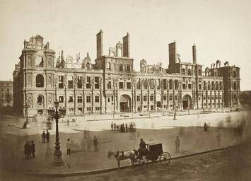 Keywords: The Hötel de Ville after the Commune.jpg Locals and tourists alike gawked at the remains of the Paris city hall built beginning in 1532 and completed nearly a century later Along with treasured paintings and sculptural decoration historically precious archives of the City of Paris were forever lost when the building was set ablaze in May 1871 A reconstruction of the Hôtel de Ville begun in 1874 and completed a decade later stands on the same site today 1871 Albumen silver print from glass negative Institution Metropolitan Museum of Art object history exhibition history credit line The Elisha Whittelsey Collection The Elisha Whittelsey Fund 1959 190022030 accession number 59 600 59 PD-100 Uploaded with UploadWizard Destructions of the Hôtel-de-Ville during the Paris Commune 1871 in Paris Historical images of Hôtel de Ville de Paris West facade of Hôtel de Ville de Paris 19th-century photographs of Paris Images of Paris from the Metropolitan Museum of Art Photographs in the Metropolitan Museum of Art Photographs of Paris by Hippolyte-Auguste Collard 1871 photographs Carriages in Paris Valued images of Paris Hôtel de Ville de Paris after the Commune 12 21 5 December 2013 UTC The Hötel de Ville after the Commune jpg |