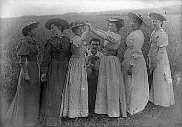 | Keywords: The Immortals.jpg The Immortals<br>Glasgow School of Art students at Roaring Camp in Ayreshire Left to right Frances MacDonald Agnes Raeburn Janet Aitken Charles Rennie Mackintosh Katherine Cameron Jessie Keppie and Margaret MacDonald http //birlinn co uk/files/Image/HHandSpicture3 jpg ca 1894 Author photographer died most probably 70 years ago PD-old Glasgow School Frances MacDonald 1894 ca Margaret MacDonald 1894 ca 1890s photographs Charles Rennie Mackintosh 1894 | ||||