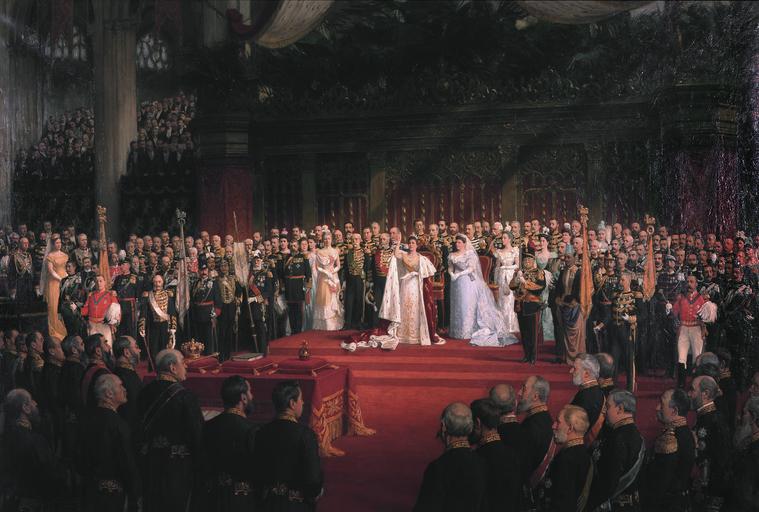 | Keywords: The inauguration of Queen Wilhelmina, by Nicolaas van der Waay.jpg en The inauguration of Queen Wilhelmina on 6 September 1898 in the Nieuwe Kerk in Amsterdam oil on canvas 200 x 300 cm signed in an unknown place 1898 - 1899 - 1898 1899 https //www paleishetloo nl/blog/kleding-koninklijke-kamerheren/ Palace Het Loo Creator Nicolaas van der Waay other versions Custom license marker 2016 10 11 PD-old-70 Nicolaas van der Waay 1898 Wilhelmina of the Netherlands in art 1898 Wilhelmina of the Netherlands wearing fur Inauguration of Queen Wilhelmina of the Netherlands ImageNote 1 371 1051 23 23 2286 1542 2 Prime Minister Nicolaas Pierson ImageNoteEnd 1 ImageNote 2 1232 731 23 23 2286 1542 2 Queen Wilhelmina of the Netherlands ImageNoteEnd 2 ImageNote 3 1383 728 23 23 2286 1542 2 Queen Mother Emma of Waldeck and Pyrmont ImageNoteEnd 3 |