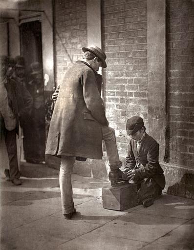 Keywords: lse london school of economics londonschoolofeconomics street_life_in_london streetlifeinlondon shoe-black shoeblack shoe shine boy shoeshineboy boot-black bootblack child worker childworker shoe shine shoeshine london street photography streetphotography monochrome From 'Street Life in London', 1877, by John Thomson and Adolphe Smith: “The independent boot-black whose photograph is before the reader, found by experience that the system instituted was not altogether pleasant. He has served in two brigades, the "blues" and the "reds," and found them both equally objectionable; so, at last, he gave up the uniform and became an independent boot-black. In this capacity, though free, he experienced all the persecutions to which I have alluded, and as he grew older and more tired of this life, he finally resolved to leave the narrow streets for the broader thoroughfares of the ocean. As a sailor, he promises to become a useful help to his captain and ship. His mother has to nurse an invalid husband, and must also provide for a large family. Under these circumstances, it was not always easy for her to spare the services of her son. But when he became an independent boot-black, he could go out at his own hours, and thus was of greater use to his mother in her trouble; and it was a great help to the family to know that whenever the boy had a few moments to spare, he might run out and hope to gain some pence by cleaning gentlemen's boots.” For the full story, and other photographs and commentaries, follow this link and click through to the PDF file at the bottom of the description archives.lse.ac.uk/Record.aspx?src=CalmView.Catalog&i... From 'Street Life in London', 1877, by John Thomson and Adolphe Smith: “The independent boot-black whose photograph is before the reader, found by experience that the system instituted was not altogether pleasant. He has served in two brigades, the "blues" and the "reds," and found them both equally objectionable; so, at last, he gave up the uniform and became an independent boot-black. In this capacity, though free, he experienced all the persecutions to which I have alluded, and as he grew older and more tired of this life, he finally resolved to leave the narrow streets for the broader thoroughfares of the ocean. As a sailor, he promises to become a useful help to his captain and ship. His mother has to nurse an invalid husband, and must also provide for a large family. Under these circumstances, it was not always easy for her to spare the services of her son. But when he became an independent boot-black, he could go out at his own hours, and thus was of greater use to his mother in her trouble; and it was a great help to the family to know that whenever the boy had a few moments to spare, he might run out and hope to gain some pence by cleaning gentlemen's boots.” For the full story, and other photographs and commentaries, follow this link and click through to the PDF file at the bottom of the description archives.lse.ac.uk/Record.aspx?src=CalmView.Catalog&i...