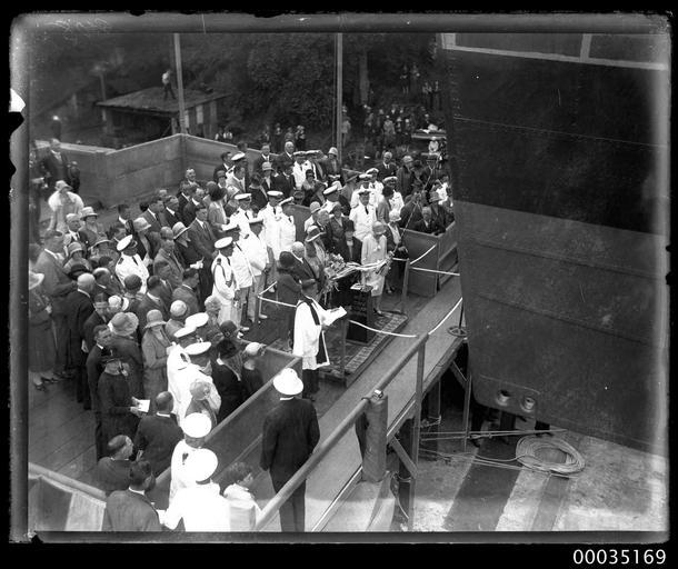| Keywords: hood collection hoodcollection 35175 samuel j hood collection samueljhoodcollection hood hmas albatross hmasalbatross royal australian navy royalaustraliannavy navy naval vessel navalvessel sydney launch naval personnel navalpersonnel naval officers navalofficers officials navy event navyevent cockatoo island cockatooisland cockatoo island dockyards cockatooislanddockyards 1928 reverend a g rix reverendagrix lady ethel stonehaven ladyethelstonehaven lord john lawrence baird stonehaven lordjohnlawrencebairdstonehaven lord stonehaven lordstonehaven seaplane carrier seaplanecarrier ship warship ran hmas albatross (1928) hmasalbatross1928 seaplane tender seaplanetender royal navy royalnavy hms albatross hmsalbatross cockatoo docks and engineering company cockatoodocksandengineeringcompany cockatoo island dockyard cockatooislanddockyard shipyard ship launching shiplaunching blackandwhite monochrome photo border black and white This photograph depicts the launch of the Royal Australian Navy's first seaplane carrier HMAS ALBATROSS I on 23 February 1928 at Cockatoo Island Dockyard in Sydney. The woman at the centre of the photograph holding the rope is Lady Ethel Stonehaven, wife of Lord John Lawrence Baird Stonehaven, the Governor-General of Australia. Lady Stonehaven launched the vessel and performed a ceremonial christening by releasing a bottle of Australian wine. The Reverend A G Rix is also visible in the photograph, conducting a religious service also from the launching platform.  This photo is part of the Australian National Maritime Museum’s Samuel J. Hood Studio collection. Sam Hood (1872-1953) was a Sydney photographer with a passion for ships. His 60-year career spanned the romantic age of sail and two world wars. The photos in the collection were taken mainly in Sydney and Newcastle during the first half of the 20th century.   The ANMM undertakes research and accepts public comments that enhance the information we hold about images in our collection. This record has been updated accordingly.   Photographer: Samuel J. Hood Studio Collection  Object no. 00035169 This photograph depicts the launch of the Royal Australian Navy's first seaplane carrier HMAS ALBATROSS I on 23 February 1928 at Cockatoo Island Dockyard in Sydney. The woman at the centre of the photograph holding the rope is Lady Ethel Stonehaven, wife of Lord John Lawrence Baird Stonehaven, the Governor-General of Australia. Lady Stonehaven launched the vessel and performed a ceremonial christening by releasing a bottle of Australian wine. The Reverend A G Rix is also visible in the photograph, conducting a religious service also from the launching platform.  This photo is part of the Australian National Maritime Museum’s Samuel J. Hood Studio collection. Sam Hood (1872-1953) was a Sydney photographer with a passion for ships. His 60-year career spanned the romantic age of sail and two world wars. The photos in the collection were taken mainly in Sydney and Newcastle during the first half of the 20th century.   The ANMM undertakes research and accepts public comments that enhance the information we hold about images in our collection. This record has been updated accordingly.   Photographer: Samuel J. Hood Studio Collection  Object no. 00035169 |