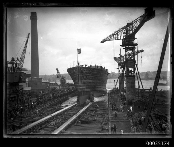 | Keywords: hood collection hoodcollection hmas albatross hmasalbatross dry dock drydock dock cockatoo island cockatooisland samuel j hood collection samueljhoodcollection sydney harbour sydneyharbour sydney naval vessel navalvessel ship warship royal australian navy royalaustraliannavy ran hmas albatross (1928) hmasalbatross1928 seaplane tender seaplanetender royal navy royalnavy hms albatross hmsalbatross seaplane carrier seaplanecarrier cockatoo docks and engineering company cockatoodocksandengineeringcompany cockatoo island dockyard cockatooislanddockyard ship launching shiplaunching slipway crane hood navy launch naval personnel navalpersonnel naval officers navalofficers officials navy event navyevent cockatoo island dockyards cockatooislanddockyards 1928 reverend a g rix reverendagrix lady ethel stonehaven ladyethelstonehaven lord john lawrence baird stonehaven lordjohnlawrencebairdstonehaven lord stonehaven lordstonehaven blackandwhite monochrome photo border outdoor black and white This photograph depicts the launch of the Royal Australian Navy's first seaplane carrier HMAS ALBATROSS I on 23 February 1928 at Cockatoo Island Dockyard in Sydney.  This photo is part of the Australian National Maritime Museum’s Samuel J. Hood Studio collection. Sam Hood (1872-1953) was a Sydney photographer with a passion for ships. His 60-year career spanned the romantic age of sail and two world wars. The photos in the collection were taken mainly in Sydney and Newcastle during the first half of the 20th century.   The ANMM undertakes research and accepts public comments that enhance the information we hold about images in our collection. This record has been updated accordingly.   Photographer: Samuel J. Hood Studio Collection  Object no. 00035174 This photograph depicts the launch of the Royal Australian Navy's first seaplane carrier HMAS ALBATROSS I on 23 February 1928 at Cockatoo Island Dockyard in Sydney.  This photo is part of the Australian National Maritime Museum’s Samuel J. Hood Studio collection. Sam Hood (1872-1953) was a Sydney photographer with a passion for ships. His 60-year career spanned the romantic age of sail and two world wars. The photos in the collection were taken mainly in Sydney and Newcastle during the first half of the 20th century.   The ANMM undertakes research and accepts public comments that enhance the information we hold about images in our collection. This record has been updated accordingly.   Photographer: Samuel J. Hood Studio Collection  Object no. 00035174 |