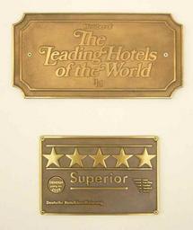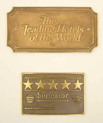 Keywords: The Leading Hotels of the World.jpg first sign Sign of membership The Leading Hotels of the World Ltd is the prestigious luxury hospitality organization representing more than 420 of the world's finest hotels resorts and spas Its HQ is in New York ” second sign Hotel rating stars ” seen at Hotel Kempinski Vier Jahreszeiten Munich Germany own 2006-09-06 User Mattes Hotel Vier Jahreszeiten Signs in Munich Bronze plaques Taken with Panasonic Lumix DMC-LC50 Work by Mattes 2006 User Mattes/Contributions/Topics/Buildings and structures Rectangular signs Hotel advertising Hotel signs Luxury hotels Dehoga de Bild The Leading Hotels of the World jpg en Image The Leading Hotels of the World jpg |