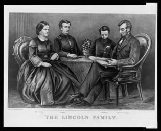 MAKE A MEME View Large Image The Lincoln Family, Currier & Ives.jpg Currier Ives lithograph of United States President Abraham Lincoln with his wife Mary Todd Lincoln and his sons Robert and Thaddeus Lincoln LOC-image cph 3c23759 1867 Currier Ives Engravings of Abraham ...
