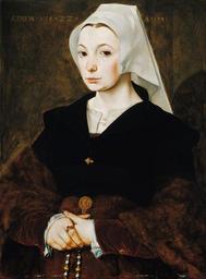 | Keywords: The Master of the 1540s - Portrait of a young woman - Google Art Project.jpg Google Art Project Q20487982 creator Master of the 1540s 1541 technique oil oak panel cm 59 5 44 9 0 15th “19th c European art Gift of James Fairfax AC 1993 oil on panel James Oswald Fairfax AC Australia b 1933 1982-31 Aug 1993 Bowral/New South Wales/Australia Gift of James Fairfax 1993 Purchased by James Fairfax from Artneys International Ltd 1982<br />Artneys International Ltd 1982 by 1982 Sold to James Fairfax 1982<br />Cramer Netherlands 1976-1977 The Hague/Netherlands dealer<br />H Becker circa 1967 by 1967 listed in 'Sammlung Becker I gemälde alter meister / bearbeitung des kataloges' by Rolf Fritz Dortmund 1967 as collection of H Becker <br />Dr Hans Wetzlar Netherlands d 1977 Amsterdam/Netherlands after 1952 and by 1953 not listed in Max J Friedlander 'Collection Dr H Wetzlar' Amsterdam 1952 Lent to the exhibition 'Le portrait dans les Pays-Bas' Musée Communal Bruges 1953 Signature_ _Date Not signed Dated u r oil 1541 special url_id aQHkEMDmyGzrXQ PD-old-100 DEFAULTSORT Master of the 1540s Portrait female Art Gallery of New South Wales Master of the 1540s Art Gallery of New South Wales - European art Google Art Project works by Master of the 1540s 1540s portrait paintings 16th-century portrait paintings of women 16th-century women looking at viewer in art 1541 paintings Oil paintings of women Paintings in the Art Gallery of New South Wales Master Of The 1540s Paintings with years of production artist |