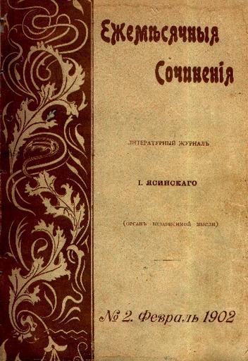 | Keywords: The monthly work.jpg Обложка жу нала Ежемесячные сочинения 1902 г Transferred from http //ru wikipedia org ru wikipedia; transfer was stated to be made by User triumphato <br/> Original text Собственное скани ованное изоб ажение 2009 г <br/> 2009 02 23 original upload date triumphato Original uploader was Triumphato at http //ru wikipedia org ru wikipedia Released into the public domain by the author ru wikipedia Triumphato page is/was http //ru wikipedia org/w/index php title Image 3AJasinskiOpus jpg here All following user names refer to ru wikipedia 2009-02-23 13 10 Triumphato 395×575× 108087 bytes <nowiki> Описание Обложка жу нала Ежемесячные сочинения 1902 г Источник Собственное скани ованное изоб ажение В емя соз�</nowiki> __NOTOC__ int license-header Magazines of Russia 1902 Ieronim Yasinsky Cover of book scanned by Triumphato Magazines of Russia to be categorised by name |