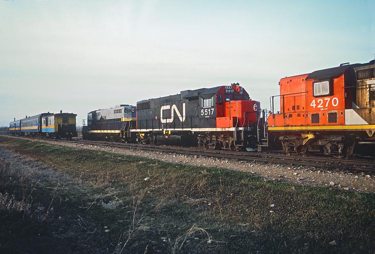 canadiannational The Muskeg Mixed Train in Alberta, May 1985 - 11 Photos (29239499883).jpg en When I asked the Canadian Railroads Group of Train Orders about these photos tsokolan responded Looks like Roger rode the Muskeg Mixed which IIRC was the last mixed train on the CNR Service was between Edmonton and Fort McMurray AB and ended in the early 1980s <br> <b>Roger Puta</b> took pictures of the train working at Lac La Biche Alberta and rode the train from there both in the cab and in the coach I'm pretty sure he rode to Edmonton <br> CN 4603 CN 5517 and CN 4270 at Lac La Biche CN GP9 4603 GP9 was Northern Alberta Railway 202 and it is now a slug CN 252 2016-09-22 19 17 36 https //www flickr com/people/129679309 N05 railfan 44 https //www flickr com/photos/129679309 N05/29239499883/ User Fæ/Flickr API Puta's CN and Roads Absorbed into the CN train railroad EMD United States Locomotive Photographers Western Railroads American Rails Steel Rails Across North America North American Railroads Baldwin Locomotives Railroad Photographer USA/Canada Railroad Picture Hall of Fame Classic EMD Power EMD Gallery Railroad Sightings Canadian National Mel Finzer RogerPuta Photographs by Roger Puta Photos uploaded from Flickr by Fæ using a script 1985 in Alberta 1985 in rail transport in Canada |