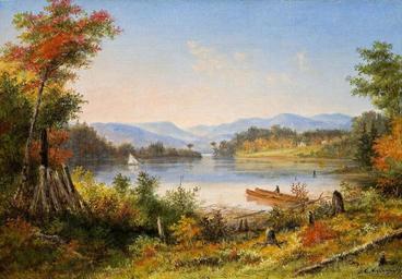 Keywords: 'The Narrows, Lake St. Charles', oil painting by Cornelius Krieghoff, 1863.jpg artwork title The Narrows Lake St Charles oil on canvas cm 23 33 3 http //www bonhams com/auctions/17549/lot/219/ Bonhams Toronto 30 Nov 2009 lot 219 Creator Cornelius Krieghoff 1863 C Krieghoff ~ signature lower right The Narrows Lake St Charles 1863 ~ title / date verso object history Acquired directly from the artist by Robert Meighen <br/>By descent to Brigadier-General Frank Stephen Meighen 1870-1946 Montreal and by descent to his daughter Gwyneth Frances Meighen <br/>By descent to the late owner PD-old-100-1923 DEFAULTSORT Krieghoff Cornelius; Landscape; Bonhams 2009 Landscape paintings by Cornelius Krieghoff Images from Bonhams Lakes of Canada in art Lac Saint-Charles 1860s landscape paintings