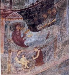 | Keywords: The Nativity of the Virgin - Google Art Project.jpg commons date commons medium commons dimensions commons institution commons location commons references commons object_history commons exhibition_history commons credit_line commons inscriptions commons notes commons accession_number commons source commons permission commons other_versions commons zoom core title The most laconic iconographic version with minimum of characters was chosen for this fresco In the center of the composition there is a bed with birthing mother Three women congratulate Anna and bring her presents In the lower part near the bed there are two midwives bathing a baby “ Mary The scene combines the naturalness of genre scene and ritual iconography of Byzantine art core creator Unknown core date dateCreated 1000 core type monumental painting fresco google display_date 1000 google is_artproject TRUE google is_gigapixel FALSE google is_secured TRUE google partner/id 000000000804b21e google picasa_token QY8aN3B9J7oCzGQOe3HFhy6u2wM special url_id OQFn0GWJCA8Ktg google partner/name St Sophia of Kyiv special partner/name_no_lang St Sophia of Kyiv PD-old-100-1923 Google Art Project works by unknown artist Saint Sophia Cathedral frescos Frescos of Birth of Mary |