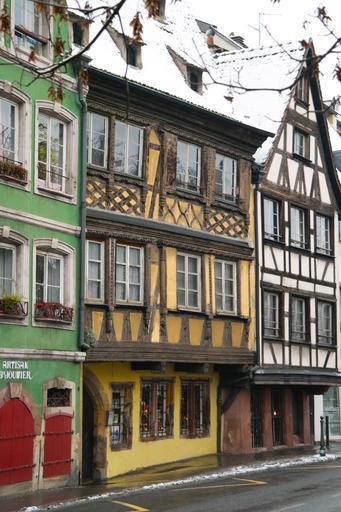 Keywords: the old city buildings architecture wooden winter strasburg france