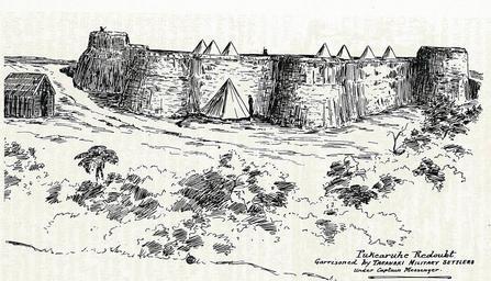 Keywords: The original redoubt at pukearuhe.jpg en The original redoubt at Pukearuhe A blockhouse was afterwards built in the redoubt and the work was enlarged Pukearuhe was occupied as a frontier Armed Constabulary post until the year 1885 The New Zealand Wars James Cowan 1922 History of New Zealand James Cowan New Zealand writer PD-old |