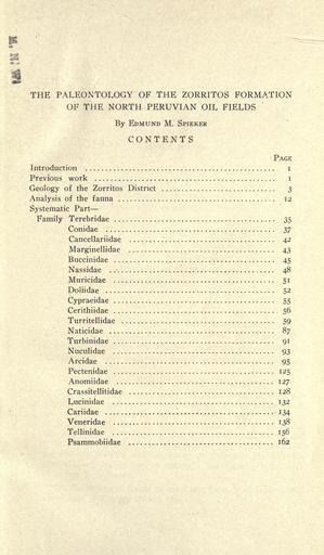 Keywords: The paleontology of the Zorritos formation of the north Peruvian oil fields BHL19066930.jpg The paleontology of the Zorritos formation of the north Peruvian oil fields by Edmund M Spieker 19066930 62958 22419 Table of Contents http //www biodiversitylibrary org/page/19066930 10 5962/bhl title 22419 Spieker Edmund M NOT_IN_COPYRIGHT<br> Biodiversity Heritage Library PD-old-70-1923 The paleontology of the Zorritos formation of the north Peruvian oil fields Images uploaded by Fæ Files from the Biodiversity Heritage Library |