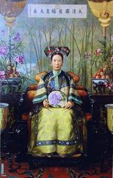 Keywords: The Portrait of the Qing Dynasty Cixi Imperial Dowager Empress of China.PNG Artwork Creator Hubert Vos Hubert Vos of the dowager Empress Cixi of Qing Dynasty siting on an armchair On the bamboo forest painted background there is written from right to left in traditionnal chinese 大清 慈禧皇太后 simplified 大清国慈禧皇太后 meaning Great Qing Empire Cixi Empress Cups of fruits surrounding the character as for any highest rank personality in Imperial China Hubert Vos de l'impératrice douairière Cixi de la Dynastie Qing assise sur un fauteuil Sur le fond décoré d'une peinture de forêt de bambou il y a une inscription en chinois traditionnel 大清 慈禧皇太后 en version simplifiée 大清国慈禧皇太后 signifiant « Impératrice Cixi du Grand Empire Qing » Des coupes de fruits entourent le personnage comme pour toutes les personnalités de plus haut rang de la Chine impériale 胡博·华士 Hubert Vos 荷兰画家的油画 慈禧皇太后 扶手椅上 后 竹林画的背景上边 写 大清 慈禧皇太后 ( 体 大清国慈禧皇太后 ) 慈禧旁边 水 盘 1906 Oil Canvas cm 223 142 <ref name Artxun >http //news artxun com/youhua-1328-6639360 shtml</ref> Summer Palace Beijing accession number object history Museum Summer palace <ref name Artxun /> credit line https //repository si edu/bitstream/handle/10088/17970/096-109_Anderson EastWest Web Final pdf sequence 1 isAllowed y Anderson Virginia A Semi-Chinese Picture Hubert Vos and the Empress Dowager of China PD-old-auto 1935 PD-China 150px Réferences <references /> DEFAULTSORT Vos Hubert Portrait paintings by Hubert Vos Dowager Empress Cixi Portrait paintings of Empress Dowager Cixi