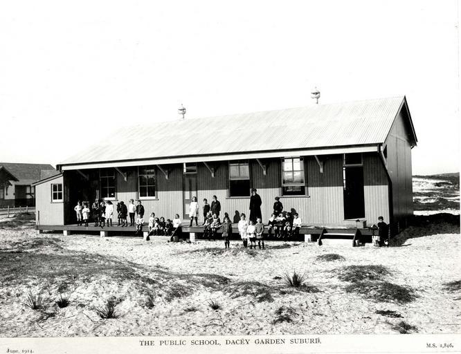 Keywords: srnsw:series=5225 outdoor building architecture Title: The public school, Dacey Garden suburb Dated: month and year only 01/06/1914 Digital ID: 5225_a018_a018000033 Rights: www.records.nsw.gov.au/about-us/rights-and-permissions We'd love to hear from you if you use our photos/documents. From a series of photographs of 'Dacey Garden Suburb' (Daceyville) - a development by the Housing Board of NSW as Sydney's "first planned modern garden suburb". Daceyville was developed between 1913 and 1918 and is located in south-eastern Sydney within the municipalities of Mascot and Botany. The images in the series show scenes of the area before development, road building, the types of houses built, shops, as well as the Public School. The suburb was named after the state parliamentarian John Rowland Dacey who played a vital role in the approval of this urban development. Many other photos in our collection are available to view and browse on our website using Photo Investigator. Title: The public school, Dacey Garden suburb Dated: month and year only 01/06/1914 Digital ID: 5225_a018_a018000033 Rights: www.records.nsw.gov.au/about-us/rights-and-permissions We'd love to hear from you if you use our photos/documents. From a series of photographs of 'Dacey Garden Suburb' (Daceyville) - a development by the Housing Board of NSW as Sydney's "first planned modern garden suburb". Daceyville was developed between 1913 and 1918 and is located in south-eastern Sydney within the municipalities of Mascot and Botany. The images in the series show scenes of the area before development, road building, the types of houses built, shops, as well as the Public School. The suburb was named after the state parliamentarian John Rowland Dacey who played a vital role in the approval of this urban development. Many other photos in our collection are available to view and browse on our website using Photo Investigator. |