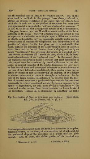 | Keywords: The Quarterly journal of the Geological Society of London (12981479134).jpg 1859 <br> SCKOPE COliTES AND CRATEKS <br> 517 <br> and the terminal cone of Etna to be eruptive cones But on the <br> other hand M de Buch in the passage I have already referred to <br> affirms the extreme regularity of the entire figure of Etna to be a <br> proof that it could not be the product of eruptions but must have <br> been upheaved at a single stroke ' a V instant meme de sanaissancef ' <br> In fact M de Buch's test is the precise reverse of M de Beaumont's <br> Suppose however we take M de Beaumont's as that of the latest <br> authority on the point Surely it is trifling with the subject to rest <br> so important a distinction as to origin upon a difference in outline <br> so slight so disputable nay so necessarily variable under varying <br> circumstances of composition dilapidation c independently of all <br> question of origin In the first place too it is undeniable that <br> many perhaps the majority of the acknowledged cones of eruption <br> about Etna and in Central France show a sloping outline by no <br> means ' rectilinear but sweeping downwards in a gradual curve <br> that lessens in steepness till it meets the base which is M de Beau- <br> mont's characteristic of an upheaved cone In the second place <br> the slightest consideration makes it obvious that great differences in <br> this respect must be occasioned by casual differences in the size <br> shape or mineral character of the ejected fragments by their more <br> or less heated state and consequent coherence or non- coherence at <br> the time of their fall and accumulation by their greater or less degra- <br> dation by storms of rain accompanying the eruption or by a longer <br> or shorter subsequent exposure to atmospheric influences In the <br> case of the larger volcanic mountains if we suppose them the pro- <br> duct of repeated eruptions a graduated slope towards the base must <br> necessarily have been occasioned not only by longer exposure to the <br> agents of degradation but still more by the accumulation of the <br> lavas and scorioe emitted from lateral vents on the lower flanks of <br> the mountain Indeed M de Beaumont by admitting the many <br> Fig 5 Outline of Etna as seen from near Catania From Mem <br> Soc Geol de France vol iv pi 2 <br> hundred parasitic cones of Etna and their lava-streams to be eruptive <br> himself accounts on the theory of accumulation not of upheaval for <br> the graduated slope of the mountain as a whole into the plain <br> around And in truth the visible portion of his central up- <br> Memoires iv p 157 <br> t Canaries p 326-7 36162084 111474 51125 Page 517 Text v 15 http //www biodiversitylibrary org/page/36162084 1859 Geological Society of London Biodiversity Heritage Library The Quarterly journal of the Geological Society of London v 15 1859 Geology Periodicals Smithsonian Libraries bhl page 36162084 dc identifier http //biodiversitylibrary org/page/36162084 smithsonian libraries Information field Flickr posted date ISOdate 2014-03-07 Check categories 2015 August 26 CC-BY-2 0 BioDivLibrary https //flickr com/photos/61021753 N02/12981479134 2015-08-26 14 57 02 cc-by-2 0 PD-old-70-1923 The Quarterly journal of the Geological Society of London 1859 Photos uploaded from Flickr by FĂŚ using a script |