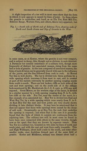Keywords: The Quarterly journal of the Geological Society of London (12961164485).jpg 276 PEOCEEDINGS OF THE GEOLOGICAL SOCIETY May 12 <br> A sKght inspection of a tor will in most cases show that the form <br> in which it now appears is caused by lines of joint In those where <br> the granite is crystalline and hard as at Yes Tor East Mill Tor <br> Belstone Range Wattern Tors and others this is very apparent ; but <br> Eig 1 ” South side of North end of Belstone Tors showing ends of <br> North and South Joints and Dip of Granite to the West <br> in some cases as at Kestor where the granite is not very compact <br> and is subject to decay this though not so obvious is soon detected <br> A Dartmoor tor consists sometimes of a solitary rock though more <br> frequently of distinct but associated masses rising from the same <br> bed or boss of granite At the tors composed of associated masses the <br> form of each division can be generally traced with ease to the influence <br> of the joints and the line followed from rock to rock At Hound <br> Tor this is well shown The tor is divided into three portions by a <br> wide opening which traverses it from west to east and is crossed <br> at part of the eastern extremity by another opening ranging nearly <br> from north to south There are low broken cliffs on both sides of the <br> east and west opening ; and on the south side of it the oblique <br> beds mentioned by Mr Mackintosh Q J G S xxiv p 279 are well <br> exposed Great Mistor on the western edge of the moor is divided <br> in a similar manner by a wide opening ranging from N to S with <br> low cliffs at the side Pur Tor near the centre of the moor is a <br> fine example of an associated tor Hey Tor is divided into East and <br> West Hey Tor by a wide opening which runs nearly from N to S <br> At East Hey Tor the east and west joints are very clearly shown <br> dividing it into distinct blocks It may here be mentioned that it <br> does not appear that these wide openings were caused by the decay <br> of soft rock Occasionally as at Hey Tor the rock that underlies <br> the opening is exposed ; and when that is the case it is generally <br> found that the beds of which it consists are continuous from the <br> adjoining tors The solitary tors will in most cases be found to <br> have been once connected with others in the same vicinity though <br> now so far apart that they are known by separate names Thus <br> Yes Tor is a solitary tor bounded on two sides by lines of north and <br> south joint and with the east and west lines easily traceable This <br> and Iligh Willhayse about half a mile to the south and some other <br> smaller rocks once doubtless formed part of the same field of <br> granite Kestor and Middletor solitary tors distant about half a 36103123 111288 51125 Page 276 Text v 25 http //www biodiversitylibrary org/page/36103123 1869 Geological Society of London Biodiversity Heritage Library The Quarterly journal of the Geological Society of London v 25 1869 Geology Periodicals Smithsonian Libraries bhl page 36103123 dc identifier http //biodiversitylibrary org/page/36103123 smithsonian libraries Information field Flickr posted date ISOdate 2014-03-06 Check categories 2015 August 26 CC-BY-2 0 BioDivLibrary https //flickr com/photos/61021753 N02/12961164485 2015-08-26 15 52 09 cc-by-2 0 PD-old-70-1923 The Quarterly journal of the Geological Society of London 1869 Photos uploaded from Flickr by Fæ using a script |