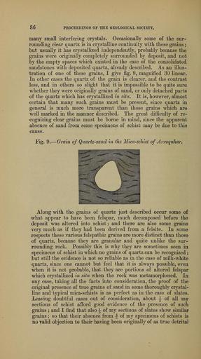 | Keywords: The Quarterly journal of the Geological Society of London (12960682974).jpg 86 <br> PKOCEEDINGS OF THE GEOLOGICAL SOCIETY <br> many small interfering crystals Occasionally some of the sur- <br> rounding clear quartz is in crystalline continuity with these grains ; <br> but usually it has crystallized independently probably because the <br> grains were originally completely surrounded by deposit and not <br> by the empty spaces which existed in the case of the consolidated <br> sandstones with deposited quartz already described As an illus- <br> tration of one of these grains I give fig 9 magnified 30 linear <br> In other cases the quartz of the grain is clearer and the contrast <br> less and in others so slight that it is impossible to be quite sure <br> whether they were originally grains of sand or only detached parts <br> of the quartz which has crystallized in situ It is however almost <br> certain that many such grains must be present since quartz in <br> general is much more transparent than those grains which are <br> well marked in the manner described The great difficulty of re- <br> cognizing clear grains must be borne in mind since the apparent <br> absence of sand from some specimens of schist may be due to this <br> cause <br> Fig 9 ” Grain of Quartz-sand in tJie Mica-scMst of ArroquTiar <br> Along with the grains of quartz just described occur some of <br> what appear to have been felspar much decomposed before the <br> deposit was altered into schist; and there are also some grains <br> very much as if they had been derived from a felsite In some <br> respects these various felspathic grains are more distinct than those <br> of quartz because they are granular and quite unlike the sur- <br> rounding rock Possibly this is why they are sometimes seen in <br> specimens of schist in which no grains of quartz can be recognized ; <br> but still the evidence is not so rehable as in the case of milk-white <br> quartz since one cannot but feel that it is always possible even <br> when it is not probable that they are portions of altered felspar <br> which crystallized in situ when the rock was metamorphosed In <br> any case taking all the facts into consideration the proof of the <br> original presence of true grains of sand in some thoroughly crystal- <br> line and typical mica-schists is as perfect as in the case of slates <br> Leaving doubtful cases out of consideration about i of all my <br> sections of schist afford good evidence of the presence of such <br> grains ; and I find that also of my sections of slates show similar <br> grains ; so that their absence from - of my specimens of schists is <br> no valid objection to their having been originally of as true detrital 36091173 111264 51125 Page 86 Text 36 http //www biodiversitylibrary org/page/36091173 1880 Geological Society of London Biodiversity Heritage Library The Quarterly journal of the Geological Society of London v 36 1880 Geology Periodicals Smithsonian Libraries bhl page 36091173 dc identifier http //biodiversitylibrary org/page/36091173 smithsonian libraries Information field Flickr posted date ISOdate 2014-03-06 Check categories 2015 August 26 CC-BY-2 0 BioDivLibrary https //flickr com/photos/61021753 N02/12960682974 2015-08-26 15 55 37 cc-by-2 0 PD-old-70-1923 The Quarterly journal of the Geological Society of London 1880 Photos uploaded from Flickr by Fæ using a script |