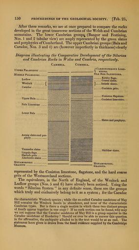 | Keywords: The Quarterly journal of the Geological Society of London (12684285213).jpg 150 <br> PROCEEDINGS OF THE GEOLOGICAL SOCIETY Feb 25 <br> After these remarks we are at once prepared to compare the rocks <br> developed in the great transverse sections of the Welsh and Cumbrian <br> mountains The lower Cambrian groups Bangor and Festiniog <br> Nos 1 and 2 tabular view are amply represented by the green slates <br> and porphyries of Cumberland The upper Cambrian groups Bala and <br> Caradoc Nos 3 and 4 are however imperfectly in thickness clearly <br> Diagram illustrating the Comparative Development of the Silurian <br> and Cambrian Rocks in Wales and Cumbria respectively <br> Cambria Cumbria <br> Upper PALiEozoic <br> Middle PALiEozoic <br> Ludlow <br> Wenlock <br> Caradoc <br> Upper Bala <br> Bala Limestone <br> /Carboniferous Lime- <br> l stone <br> Old Red Sandstone <br> Kirkby flags <br> Coarse slates <br> Ireleth slates <br> Coniston grits <br> Coniston flagstone <br> Coniston limestone <br> Lower Bala <br> Slates and porphyry <br> Arenig slates and por- <br> phyry <br> Tremadoc slates <br> Lingula flags <br> Harlech grits <br> Llanberris slates <br> Metamorphic <br> Granite <br> SMddaw slates <br> Metamorphic <br> Granite <br> represented by the Coniston limestone flagstone and the hard coarse <br> grits of the Westmoreland sections <br> The equivalents in the North of England of the Wenlock and <br> Ludlow groups Nos 5 and 6 have already been noticed Using the <br> words Silurian System in any definite sense these are the groups <br> which truly and exclusively belong to it as a system ; for the Caradoc <br> the characteristic Wenlock species ; while the so-called Caradoc sandstone of May <br> Hill contains the Wenlock fossils in abundance and none of the characteristic <br> Cambrian types But is there a single section in which these two distinct groups <br> of fossils appear together in one stage If no such section can be found why may <br> we not suppose that the Caradoc sandstone of May Hill is a group superior to the <br> Caradoc sandstone of Horderley Should we ever be able to answer this question <br> in the afBrmative the ambiguity alluded to in the text would be at an end The <br> statement here given is drawn from the fossil evidence supplied by the Cambridge <br> Museum 35461152 109911 51125 Page 150 Text v 8 http //www biodiversitylibrary org/page/35461152 1852 Geological Society of London NameFound Cambria NameConfirmed Cambria NameBankID 4453973 NameFound Lingula NameConfirmed Lingula EOLID 11118945 NameBankID 2765654 Biodiversity Heritage Library The Quarterly journal of the Geological Society of London v 8 1852 Geology Periodicals Smithsonian Libraries bhl page 35461152 dc identifier http //biodiversitylibrary org/page/35461152 smithsonian libraries Information field Flickr posted date ISOdate 2014-02-21 Check categories 2015 August 26 CC-BY-2 0 BioDivLibrary https //flickr com/photos/61021753 N02/12684285213 2015-08-27 12 57 45 cc-by-2 0 PD-old-70-1923 The Quarterly journal of the Geological Society of London 1852 Photos uploaded from Flickr by Fæ using a script |