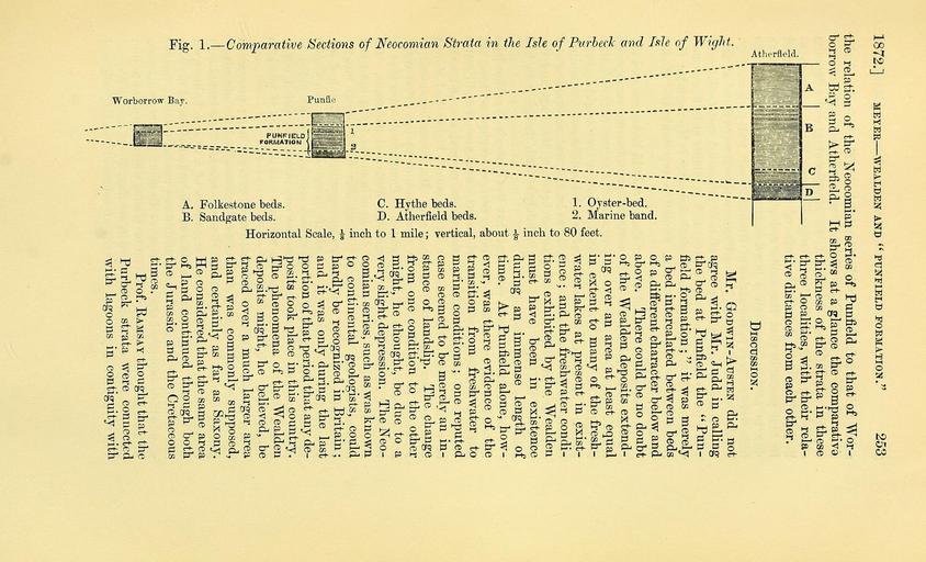 Keywords: The Quarterly journal of the Geological Society of London (12512773485).jpg 1872 <br> MEYER WEALDEN AND PTJNFIELD EOBMATION <br> 253 <br> the relation of the Neocomian series of Punfield to that of Wor- <br> borrow Bay and Atherfield It shows at a glance the comparativa <br> thickness of the strata in these <br> ' ' three localities with their rela- <br> tive distances from each other <br> DisoirssioK <br> <br> <br> « <br> - <br> c <br> <br> <br> s <br> H- <br> 3S <br> 1 <br> lOi o <br> erf <br> I S <br> <br> dp S <br> 0 <br> rt '73 <br> © 43 <br> W <br> Mr GoDWiN-AtrsTEN did not <br> agree with Mr Judd in calling <br> the bed at Punfield the Pun- <br> field formation ; it was merely <br> a bed intercalated between beds <br> of a different character below and <br> above There could be no doubt <br> of the Wealden deposits extend- <br> ing over an area at least equal <br> in extent to many of the fresh- <br> water lakes at present in exist- <br> ence ; and the freshwater condi- <br> tions exhibited by the Wealden <br> must have been in existence <br> during an immense length of <br> time At Punfield alone how- <br> ever was there evidence of the <br> transition from freshwater to <br> marine conditions; one reputed <br> case seemed to be merely an in- <br> stance of landslip The change <br> from one condition to the other <br> might he thought be due to a <br> very slight depression The Neo- <br> comian series such as was known <br> to continental geologists could <br> hardly be recognized in Britain ; <br> and it was only during the last <br> portion of that period that any de- <br> posits took place in this country <br> The phenomena of the Wealden <br> deposits might he believed be <br> traced over a much larger area <br> than was commonly supposed <br> and certainly as far as Saxony <br> He considered that the same area <br> of land continued through both <br> the Jurassic and the Cretaceous <br> times <br> Prof Ramsay thought that the <br> Purbeck strata were connected <br> with lagoons in contiguity with 34985262 108770 51125 Page 253 Text v 28 http //www biodiversitylibrary org/page/34985262 1872 Geological Society of London Biodiversity Heritage Library The Quarterly journal of the Geological Society of London v 28 1872 Geology Periodicals Smithsonian Libraries bhl page 34985262 dc identifier http //biodiversitylibrary org/page/34985262 smithsonian libraries Information field Flickr posted date ISOdate 2014-02-14 Check categories 2015 August 26 CC-BY-2 0 BioDivLibrary https //flickr com/photos/61021753 N02/12512773485 2015-08-27 10 03 39 cc-by-2 0 PD-old-70-1923 The Quarterly journal of the Geological Society of London 1872 Photos uploaded from Flickr by Fæ using a script |