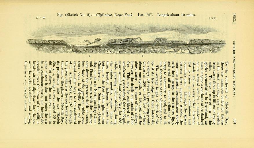 Keywords: The Quarterly journal of the Geological Society of London (12512091143).jpg 1853 <br> SUTHERLAND ARCTIC REGIONS <br> 301 <br> t-J <br> O <br> i <br> – - l <br> o <br> CO <br> too <br> 'f <br> To the southward of Melville Bay <br> there are numerous outlets for the ice <br> in the coast and they vary in breadth <br> from two or three up to fifteen or twenty <br> miles To have a correct idea of the <br> glacier accumulation in Greenland we <br> must imagine a continent of ice flanked <br> on its seaward side by a number of <br> islands and in every other direction <br> lost to vision in one continuous and <br> boundless plain Through the spaces <br> between these apparent islands the <br> enormous glacial accumulations slowly <br> seek their passage to the sea see fig <br> and send off an annual tribute of ice- <br> bergs to encumber to cool and to di- <br> lute the waters of the adjoining ocean <br> The average height or depth of the <br> ice at its free edge in these intervals <br> or valleys between the projecting points <br> of coast is 1200 or 1500 feet of which <br> about one-eighth or 150 feet will be <br> above water In some of the valleys <br> however the depth is upwards of 2400 <br> feet This may be considered to be <br> satisfactorily ascertained for the Esqui- <br> maux around South-east Bay lat 68° <br> while pursuing halibut-fishing during <br> the winter months require lines of <br> three hundred fathoms to reach the <br> bottom at the foot of the glacier near <br> Claushaven In South-east Disco <br> Bay and also in North-east Bay Ome- <br> nak Fiord we meet with the icebergs <br> that draw the greatest depth of water <br> but those of the greatest cubic con- <br> tents occur in Melville Bay and in <br> several smaller bays to the southward <br> of it At Cape York lat 7 ° although <br> the glacier there is the northward con- <br> tinuation of the glacier in Melville Bay <br> its protrusions into the sea Sketch <br> No 2 a see fig never exceed 50 to <br> 60 feet above the sea-level ; and in <br> some places it does not enter the sea <br> in a continuous mass but having de- <br> scended over the brow of the cliff it <br> breaks off and slips down into the sea <br> over the rocks scratching and scoring <br> them in a very marked manner This 34983432 108767 51125 Page 301 Text v 9 http //www biodiversitylibrary org/page/34983432 1853 Geological Society of London Biodiversity Heritage Library The Quarterly journal of the Geological Society of London v 9 1853 Geology Periodicals Smithsonian Libraries bhl page 34983432 dc identifier http //biodiversitylibrary org/page/34983432 smithsonian libraries Information field Flickr posted date ISOdate 2014-02-14 Check categories 2015 August 26 CC-BY-2 0 BioDivLibrary https //flickr com/photos/61021753 N02/12512091143 2015-08-27 09 58 39 cc-by-2 0 PD-old-70-1923 The Quarterly journal of the Geological Society of London 1853 Photos uploaded from Flickr by Fæ using a script |
