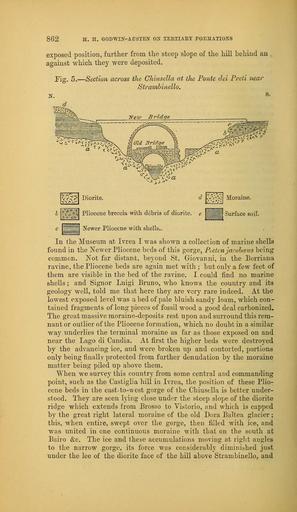 | Keywords: The Quarterly journal of the Geological Society of London (13889324750).jpg 862 <br> H H GODWi S -ADSTEN ON TEETIAET POEilATIONS <br> exposed position further from the steep slope of the hill behind an <br> agaiust which they were deposited <br> Fig 5 ” Section across the Chiusella at the Fonte del Preti near <br> fStrambinello <br> ' 7 Diorite d Jv V' <br> Pliocene breccia with debris of diorite e <br> B <br> Moraine <br> Surface soil <br> c h iiTT izj Newer Pliocene with shells <br> In the Museum at Ivrea I was shown a collection of marine shells <br> found in the IS'ewer Pliocene beds of this gorge Ptctcn jacohaus being <br> common jS ot far distant beyond St Giovanni in the Eorriana <br> ravine the Pliocene beds are again met with ; but only a few feet of <br> them are visible in the bed of the ravine I could find no marine <br> shells ; and Signor Luigi Bruno who knows the country and its <br> geology well told me that here they are very rare indeed At the <br> lowest exposed level was abed of pale bluish sandy loam which con- <br> tained fragments of long pieces of fossil wood a good deal carbonized <br> The great massive moraine-deposits rest upon and surround this rem- <br> nant or outlier of the Pliocene formation which no doubt in a similar <br> way underlies the terminal moraine as far as those exposed on and <br> near the Lago di Candia At first the higher beds were destroyed <br> by the advancing ice and were broken up and contorted portions <br> only being finally protected from farther denudation by the moraine <br> matter being piled up abovo them <br> When we survey this country from some central and commanding <br> point such as the Castiglia hill in Ivrea the position of these Plio- <br> cene beds in the east- to-west gorge of the Chiusella is better under- <br> stood They are seen lying close under the steep slope of the diorite <br> ridge which extends from Erosso to Yistorio and which is capped <br> by the great right lateral moraine of the old Dora Baltea glacier ; <br> this when entire swept over the gorge then filled with ice and <br> was united in one continuous moraine with that on the south at <br> Bairo c The ice and these accumulations moving at right angles <br> to the narrow gorge its force was considerably diminished just <br> under the lee of the diorite face of the hill above Strambinello and 36941739 113697 51125 Page 862 Text 40 http //www biodiversitylibrary org/page/36941739 1884 Geological Society of London NameFound Lago di NameFound Ptctcn jacohaus Biodiversity Heritage Library The Quarterly journal of the Geological Society of London v 40 1884 Geology Periodicals Smithsonian Libraries bhl page 36941739 dc identifier http //biodiversitylibrary org/page/36941739 smithsonian libraries Information field Flickr posted date ISOdate 2014-04-30 Check categories 2015 August 26 CC-BY-2 0 BioDivLibrary https //flickr com/photos/61021753 N02/13889324750 2015-08-26 04 54 11 cc-by-2 0 PD-old-70-1923 The Quarterly journal of the Geological Society of London 1884 Photos uploaded from Flickr by Fæ using a script |