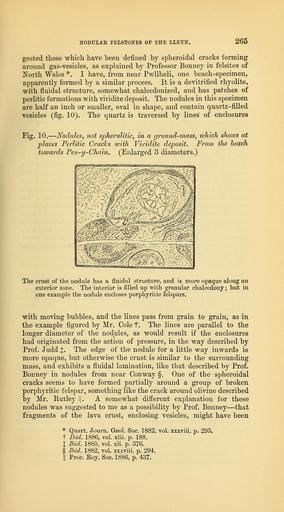| Keywords: The Quarterly journal of the Geological Society of London (13937158391).jpg NODULAR EELSTONES OF THE LLEYN 267 <br> lithologically a marked resemblance and contains similar nodular <br> structures <br> II By their texture the rocks must he classed as petrosiliceous <br> and they illustrate in a marked manner many structures which are <br> probably due to secondary devitrification They break with sub- <br> conch oidal fracture ; slides from them exhibit various micrographic <br> and dendritic growths and the ground-mass may be formed of <br> spherulites interlocking with irregular outlines Other sphe- <br> rulitic formation occurs on a large scale in the pyromerides and in the <br> radial crust of agate-nodules Felspar crystals may be modified by <br> micrographic structure and are sometimes silicified and chalcedony <br> or quartz is found filling veins the interior of nodules and the hollows <br> of vesicular lavas Thus the rocks exhibit much evidence of a sili- <br> cification and often of a radialization possibly connected with it f <br> and we may imagine that the lessening activity of the volcanoes <br> manifested itself in the percolation of heated waters carrying silica <br> in solution Geysers may have been in eruption near this locality ; <br> and some of the Ordovician conditions of the Lleyn may have been <br> similar to the Miocene activity of Schemnitz or to modern pheno- <br> mena in Iceland Possibly some of the marked perlitic and similar <br> structures were originated or intensified during the secondary alter- <br> nations of temperature in this Solfatara-stage of the district <br> III The nodular structures seem capable of being classed in the <br> following groups ” <br> 1 Contraction-spheroids or magnified perlitic structures <br> 2 Masses resulting from flow-brecciation <br> 3 Solid spherulites or pyromerides <br> 4 Agate-nodules with an outer spherulitic crust <br> 5 Quartzose amygdaloids <br> 6 Spheroidal formations developed around a nucleus such as <br> an agate-nodule a group of crystals or an original vesicle of <br> the lava <br> The large spherulites where their relations are evident seem <br> developed either along certain strata or within masses of flow- <br> brecciation Generally neighbouring examples show some approxi- <br> mation to a uniformity in their size They stand out by weathering <br> of the mass as is very noticeable in the Jersey rock where Prof <br> Bonney stated that so far as he could see they were well defined <br> only on an exposed surface and were scarcely traceable on a fresh <br> fracture They appear also to be generally uninfluenced by the <br> pressure which has modified the matrix in certain Welsh localities <br> Thus the spherulite seems to be the most durable part of the rock <br> The mass of the rock very commonly exhibits an originally vesicular <br> character resembling that of a modern trachyte The matrix <br> surrounding the nodular spherulites consists for the most part of what <br> must have been a compact laminated glassy lava now de vitrified <br> Pres Addr Geol Soc Prof Bonney 1885 pp 68 69 <br> t Compare Delesse Bull Soc GeoJ de Fr 1852 2 e ser t ix p 175 36940060 113696 51125 Page 265 Text 45 http //www biodiversitylibrary org/page/36940060 1889 Geological Society of London Biodiversity Heritage Library The Quarterly journal of the Geological Society of London v 45 1889 Geology Periodicals Smithsonian Libraries bhl page 36940060 dc identifier http //biodiversitylibrary org/page/36940060 smithsonian libraries Information field Flickr posted date ISOdate 2014-04-21 Check categories 2015 August 26 CC-BY-2 0 BioDivLibrary https //flickr com/photos/61021753 N02/13937158391 2015-08-26 05 50 43 cc-by-2 0 PD-old-70-1923 The Quarterly journal of the Geological Society of London 1889 Photos uploaded from Flickr by Fæ using a script |