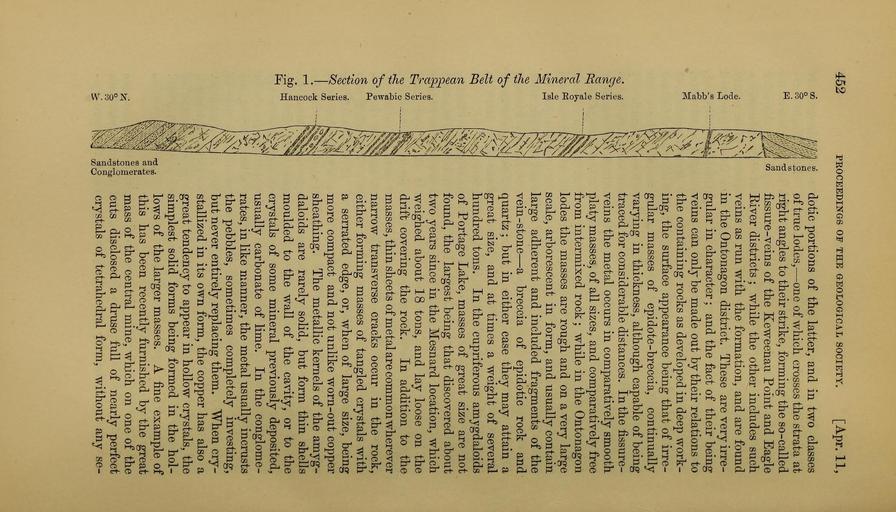 | Keywords: The Quarterly journal of the Geological Society of London (13935545441).jpg 452 <br> PROCEEDINGS OP THE GEOLOGICAL SOCIETY Apr 11 <br> Pq <br> GQ <br> Ph <br> §i <br> dotic portions of the latter and in two classes <br> of true lodes ” one of which crosses the strata at <br> right angles to their strike forming the so-called <br> fissure-veins of the Keweenau Point and Eagle <br> Eiver districts ; while the other includes such <br> veins as run with the formation and are found <br> in the Ontonagon district These are very irre- <br> gular in character ; and the fact of their being <br> veins can only be made out by their relations to <br> the containing rocks as developed in deep work- <br> ing the surface appearance being that of irre- <br> gular masses of epidote -breccia continually <br> varying in thickness although capable of being <br> traced for considerable distances In the fissure- <br> veins the metal occurs in comparatively smooth <br> platy masses of all sizes and comparatively free <br> from intermixed rock ; while in the Ontonagon <br> lodes the masses are rough and on a very large <br> scale arborescent in form and usually contain <br> large adherent and included fragments of the <br> vein-stone ” a breccia of epidotic rock and <br> quartz ; but in either case they may attain a <br> great size and at times a weight of several <br> hundred tons In the cupriferous amjgdaloids <br> of Portage Lake masses of great size are not <br> found the largest being that discovered about <br> two years since in the Mesnard location which <br> weighed about 18 tons and lay loose on the <br> drift covering the rock In addition to the <br> masses thin sheets of metal are common wherever <br> narrow transverse cracks occur in the rock <br> either forming masses of tangled crystals with <br> a serrated edge or when of large size being <br> more compact and not unlike worn-out copper <br> sheathing The metallic kernels of the amyg- <br> daloids are rarely solid but form thin shells <br> moulded to the wall of the cavity or to the <br> crystals of some mineral previously deposited <br> usually carbonate of lime In the conglome- <br> rates in like manner the metal usually incrusts <br> the pebbles sometimes completely investing <br> but never entirely replacing them When cry- <br> stallized in its oAvn form the copper has also a <br> great tendency to appear in hollow crystals the <br> simplest solid forms being formed in the hol- <br> lows of the larger masses A fine example of <br> this has been recently furnished by the great <br> mass of the central mine which on one of the <br> cuts disclosed a druse full of nearly perfect <br> crystals of tetrahedral form without any se- 36164899 111477 51125 Page 452 Text v 22 http //www biodiversitylibrary org/page/36164899 1866 Geological Society of London Biodiversity Heritage Library The Quarterly journal of the Geological Society of London v 22 1866 Geology Periodicals Smithsonian Libraries bhl page 36164899 dc identifier http //biodiversitylibrary org/page/36164899 smithsonian libraries Information field Flickr posted date ISOdate 2014-04-21 Check categories 2015 August 26 CC-BY-2 0 BioDivLibrary https //flickr com/photos/61021753 N02/13935545441 2015-08-26 06 52 57 cc-by-2 0 PD-old-70-1923 The Quarterly journal of the Geological Society of London 1866 Photos uploaded from Flickr by Fæ using a script |