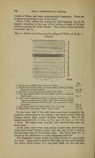 Keywords: The Quarterly journal of the Geological Society of London (13860099414).jpg 130 <br> PEOF J PEESTWICH ON A PECULIAE <br> 4 teeth of Bison and some undeterminable fragments - There are <br> no traces of gnawing on any of the bones <br> When I first visited the cutting the drift- exposure was at its <br> deepest extending to the base of the cutting a depth of 28 feet <br> and just reaching the chalk beneath The section it here presented <br> is as under fig 4 <br> Fig 4 ” Section in Catting near the village of Chilton at B fig 1 <br> enlarged <br> 0 <br> 1 1 L_ h- \ -- i Chalk <br> 1 v <br> feet <br> 1 Surface soil reddish loam with a few flints £ to 1 <br> a Cream-coloured fine chalk- and flint-rubble showing a deeply <br> festooned or waved surface 6 to 10 <br> b Soft white marl reconstructed chalk with shells 4 to 6 <br> c Very light yellow chalk- and flint-rubble with an occasional <br> black band 2 to 5 <br> d Dark brown clay almost black in places forming a line of <br> separation between the lighter beds above and the darker <br> yellow and brownish beds beneath ; two specimens of Pupa <br> marginata 2 to 4 <br> e Light-yellow flint- and chalk-rubble fine ; one Pupa 3 to 6 <br> / Coarser flint- and chalk-rubble ; bone of Bison 5 to 10 <br> In the lower half of the drift there were found irregularly dis- <br> persed in various parts of the cutting a few blocks of very hard and <br> compact Sarsen stone Lower Tertiary Sandstone Two of the <br> largest measured 2 ft x 10 in x 9 in and 1 ft 9 in x 1 ft 6 in <br> X 10 in The angles were rounded ; but otherwise they were not <br> much worn <br> In the beds c and / were some grains of glauconite derived pro- <br> bably from Lower Tertiary sands ; and the clay of bed d may be <br> derived from some of the Tertiary clays The black band in c is <br> caused by the admixture of a sooty manganese peroxide <br> The fragments of chalk mostly vary from the size of a pea to that <br> of a bean Some which consist of soft chalk are worn and rounded ; <br> but others which consist of a very hard chalk are flat and sub- 36935901 113692 51125 Page 130 Text 38 http //www biodiversitylibrary org/page/36935901 1882 Geological Society of London NameFound Pupa marginata NameConfirmed Pupa marginata Draparnaud 1801 Biodiversity Heritage Library The Quarterly journal of the Geological Society of London v 38 1882 Geology Periodicals Smithsonian Libraries bhl page 36935901 dc identifier http //biodiversitylibrary org/page/36935901 smithsonian libraries Information field Flickr posted date ISOdate 2014-04-15 Check categories 2015 August 26 CC-BY-2 0 BioDivLibrary https //flickr com/photos/61021753 N02/13860099414 2015-08-26 07 53 52 cc-by-2 0 PD-old-70-1923 The Quarterly journal of the Geological Society of London 1882 Photos uploaded from Flickr by Fæ using a script |