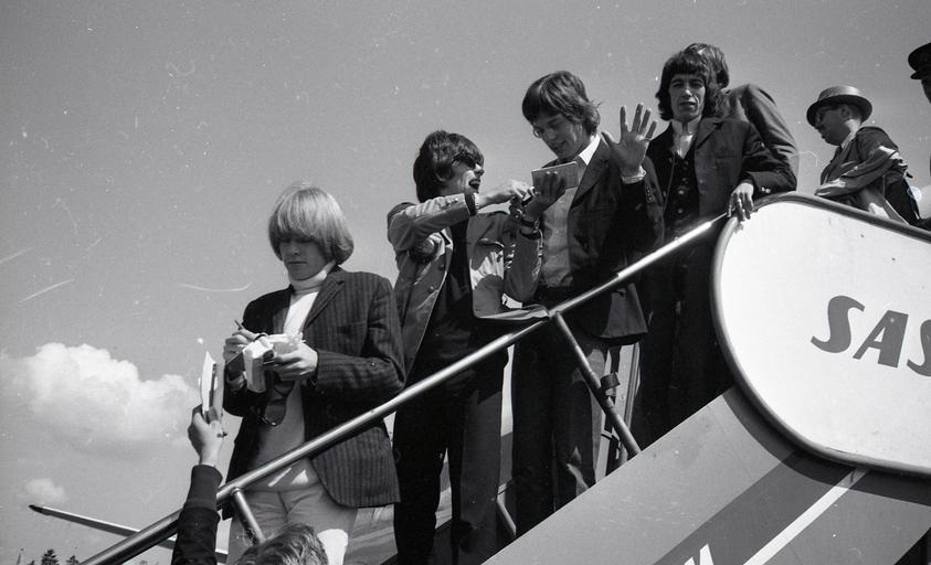 | Keywords: musikk underholdning kultur rock ungdom akershus norge bærum The Rolling Stones ankommer Fornebu sankthans 1965. Dagen etter holdt de konsert i messehallen på Skøyen (Sjølyst). Fotograf: Øderud Fra arkivet etter Billedbladet NÅ i Riksarkivet (RA/PA-0797/U/Ud/L0024/3660) The Rolling Stones ankommer Fornebu sankthans 1965. Dagen etter holdt de konsert i messehallen på Skøyen (Sjølyst). Fotograf: Øderud Fra arkivet etter Billedbladet NÅ i Riksarkivet (RA/PA-0797/U/Ud/L0024/3660) | ||||