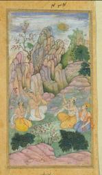 Keywords: The sage Vyasa with disciples observes his son Sukya approaching them like a ball of fire.jpg his page is from a manuscript of the Razmnama or Book of War copied in the late 16th century at the Mughal court It was the Persian translation commissioned by the emperor Akbar of the Sanskrit epic text the Mahabharata Here the sage Vyasa accompanied by three disciples in his hermitage observes his son Suka approaching them through the air like a ball of fire The painting was purchased for the museum from the executors of the late J C French with the assistance of the National Art Collections Fund in 1955 1598 made Opaque water colour and gold on paper Height 19 7 cm picture only Width 10 5 cm picture only Victoria and Albert Museum object history The manuscript to which this page belongs has been dispersed but the main portion containing the dated colophon is now in the British Museum see G Meredith-Owens and R Pinder-Wilson A Persian Translation of the Mahabharata British Museum Quaterly vol 20 no 3 London 1956 pp 62-65 pl 19 20 credit line Purchased with the assistance of The Art Fund accession number IS 121-1955 Razmnama painting http //collections vam ac uk/item/O112323/painting-the-sage-vyasa-with-disciples/ PD-Art Uploaded with UploadWizard Vyasa |