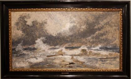 Keywords: The sea in uproar, the Scaw Spit, by Holger Drachmann, with frame.jpg Artwork Creator Holger Drachmann 1900-1908 oil on canvas Institution Skagens Museum 1480 object history credit line own photo by Szilas in Skagens Museum Other versions Commonist PD-old-100 Cc-zero Paintings by Holger Drachmann Paintings in Skagens Museum