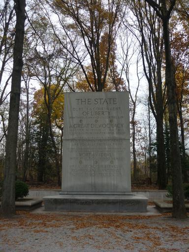 | Keywords: The State stone tablet.JPG en One of four tablets which stand on both sides of the Theodore Roosevelt Sculpture on Theodore Roosevelt Island This tablet bears quotes on the subject of the State Ours is a government of liberty by through and under law A great democracy has got to be progressive or it will soon cease to be great or a democracy Order without liberty and liberty without order are equally destructive In popular government results worth having can be achieved only by men who combine worthy ideals with practical good sense If I must choose between righteousness and peace I choose righteousness 2013-11-21 14 17 24 own Discol Uploaded with UploadWizard Theodore Roosevelt Island National Memorial |