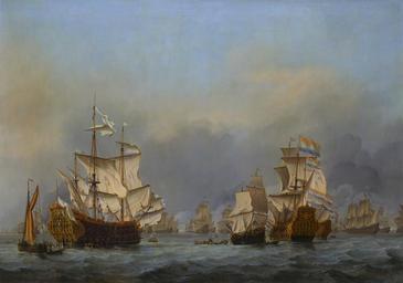 | Keywords: The surrender of the Royal Prince during the Four Days' Battle, by Willem van de Velde the Younger.jpg  The surrender of the Royal Prince during the Four Days' Battle 1st -4th June 1666 on the barrel lower center oil on canvas 75 5 x 106 cm http //www sothebys com/en/catalogues/ecatalogue html/2012/old-master-british-paintings-evening-sale /r /en/ecat fhtml L12033 html+r m /en/ecat lot L12033 html/24/ Sotheby's Creator Willem van de Velde II ~ 1670 Willem van de Velde II 17th-century sailing ships in paintings Prince Royal Four Days Battle Sailing ships of the Netherlands Royal Prince ship 1610 1670s paintings PD-old-100 ImageNote 1 1328 685 323 537 2000 1404 2 Gouda commanded by Captain Isaac Sweers ImageNoteEnd 1 ImageNote 2 255 782 498 400 2000 1404 2 Royal Prince commanded by Sir George Ayscue Admiral of the White Squadron grounded on the Galloper Shoal ImageNoteEnd 2 ImageNote 3 3 1089 220 70 2000 1404 2 The English fleet retreating from the battle scene ImageNoteEnd 3 ImageNote 4 70 1179 193 105 2000 1404 2 Willem van de Velde the Elder sketching from his galliot ImageNoteEnd 4 ImageNote 5 898 1309 43 45 2000 1404 2 W/VV signature ImageNoteEnd 5 |