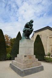 Keywords: the thinker rodin paris sculpture classic sky clouds