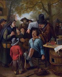 | Keywords: The Tooth-Puller, by Jan Steen.jpg  Artwork Q17275839 creator Jan Steen 1651 Ucfirst Oil on canvas cm 32 5 26 7 Institution Mauritshuis Ucfirst Anonymous de-kiezentrekker-165 LangSwitch The Tooth-Puller De kiezentrekker Mauritshuis museum catalog 51 LangSwitch The dentist De tandmeester object history ProvenanceEvent B Warnaar by 1758 Willem Lormier 1682-1758 The Hague ProvenanceEvent 1763-07-04 sale Willem Lormier T P C Haag A Franken The Hague 252 ˜Een Tandetrekker en veel Omstanders P - Breet 10¼ D uim - Hoog 1 V oet ¼ D uim ™ Price NLG 160 Willem V van Oranje-Nassau 1748-1806 The Hague ProvenanceEvent 1795 nationalization exhibition history credit line place of creation The Hague On the piece of paper Jan Steen 020 jpg Jan Steen 020 black and white 01 jpg Version in black and white from mus cat ca 1900 www mauritshuis nl http //www mauritshuis nl Home http //www mauritshuis nl/nl-nl/verdiep/de-collectie/kunstwerken/de-kiezentrekker-165/ Info http //www mauritshuis nl/-/media/ba3a1574c67f45bdbef386dab2eb25db ashx Pic accession number 165 PD-old-100 Uploaded with UploadWizard Genre paintings by Jan Steen 1651 Paintings by Jan Steen in the Mauritshuis 1651 |