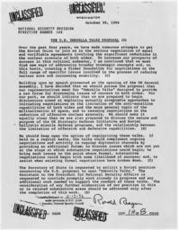 | Keywords: The U.S. Umbrella Talks Proposal - NARA - 198278.tif Scope and content General notes 198278 Local identifier President 1981-1989 Reagan National Security Council 1981 - 1989 Ronald Reagan Library NLRR 40 Presidential Drive Simi Valley CA 93065-0600 date 1984 10 26 Record group Collection RR-NSC Numbered National Security Policy Papers 1981 - 1989 Record group ARC 1189 National Security Decision Directives compiled 02/25/1981 - 01/19/1989 Series ARC 198166 File unit File unit ARC Variant control numbers NAIL Control Number NLS-NSC-NSDD-148 yes Other versions <gallery> File The_U S _Umbrella_Talks_Proposal_-_NARA_-_198278 tif tif File The_U S _Umbrella_Talks_Proposal_-_NARA_-_198278 jpg jpg </gallery> NARA-cooperation PD-USGov Presidential Decision Directives Reagan NARA TIF images with categorized JPGs |