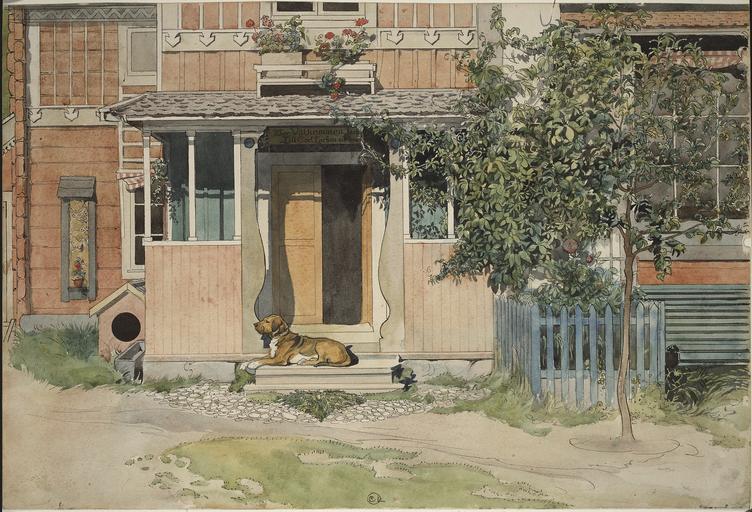 Keywords: The Veranda. From A Home (26 watercolours) (Carl Larsson) - Nationalmuseum - 24203.tif Artwork Creator Carl Larsson The Veranda From A Home 26 watercolours Carl and Karin Larsson combined new design with old traditions Practicality dictated their interior design but it was equally important that furniture and objects form an attractive harmony This ideal was also propagated by others including Ellen Key who advocated homes that were in a new and light style in her essay Skönhet för alla Beauty for All in 1899 The Larssons moved to Lilla Hyttnäs a house in Sundborn in the summer of 1889 Here Carl and Karin together created the interiors that made their home famous Karin designed the furniture and textiles which she embroidered and wove A studio was fitted up in one of the hallways It features many eye-catching details including the funny man crowning a column When a larger studio extension was added this room became a workshop for the whole family The interiors of the Larsson home were characterised by rural simplicity Nevertheless every detail was carefully designed with influences from England Scotland and Japan The kitchen which was first and foremost a place for household chores did not display the same modern interior style and comfort as the rest of the house Hos Carl och Karin Larsson möttes ett nytt formspråk och gammal tradition De praktiska ändamålen styrde inredningen men lika viktigt var att möblerna och föremålen samspelade i en harmoni Dessa idéer förespråkades också till exempel av Ellen Key Hon pläderade för nya och ljusa hem i sin uppsats Skönhet för alla från 1899 Larssons flyttade till huset Lilla Hyttnäs i Sundborn sommaren 1889 Carl och Karin skulle där tillsammans skapa den inredning som gjorde hemmet berömt Karin formgav både möbler och textilier som hon broderade och vävde En av tamburerna inreddes tidigt till ateljé Där finns rikligt av iögonfallande detaljer till exempel den lustige figuren på krönet till stolpen När en större ateljé byggdes blev detta rum en verkstad för hela familjen Inredningarna i det Larssonska hemmet gav sken av en lantlig enkelhet Samtidigt var allt noga genomtänkt och influenserna hämtades bland annat från England Skottland och Japan Köket som främst var en plats för hushållsarbete och matlagning hade dock inte samma moderna inredningsstil och bekvämlighet som de övriga rummen header Carl and Karin Larsson combined new design with old traditions Practicality dictated their interior design but it was equally important that furniture and objects form an attractive harmony This ideal was also propagated by others including Ellen Key who advocated homes that were in a new and light style in her essay Skönhet för alla Beauty for All in 1899 The Larssons moved to Lilla Hyttnäs a house in Sundborn in the summer of 1889 Here Carl and Karin together created the interiors that made their home famous Karin designed the furniture and textiles which she embroidered and wove A studio was fitted up in one of the hallways It features many eye-catching details including the funny man crowning a column When a larger studio extension was added this room became a workshop for the whole family The interiors of the Larsson home were characterised by rural simplicity Nevertheless every detail was carefully designed with influences from England Scotland and Japan The kitchen which was first and foremost a place for household chores did not display the same modern interior style and comfort as the rest of the house Hos Carl och Karin Larsson möttes ett nytt formspråk och gammal tradition De praktiska ändamålen styrde inredningen men lika viktigt var att möblerna och föremålen samspelade i en harmoni Dessa idéer förespråkades också till exempel av Ellen Key Hon pläderade för nya och ljusa hem i sin uppsats Skönhet för alla från 1899 Larssons flyttade till huset Lilla Hyttnäs i Sundborn sommaren 1889 Carl och Karin skulle där tillsammans skapa den inredning som gjorde hemmet berömt Karin formgav både möbler och textilier som hon broderade och vävde En av tamburerna inreddes tidigt till ateljé Där finns rikligt av iögonfallande detaljer till exempel den lustige figuren på krönet till stolpen När en större ateljé byggdes blev detta rum en verkstad för hela familjen Inredningarna i det Larssonska hemmet gav sken av en lantlig enkelhet Samtidigt var allt noga genomtänkt och influenserna hämtades bland annat från England Skottland och Japan Köket som främst var en plats för hushållsarbete och matlagning hade dock inte samma moderna inredningsstil och bekvämlighet som de övriga rummen date Akvarell på papper Glasad Size cm 43 32 Framed Size cm 52 38 2 Institution Nationalmuseum Stockholm Signerad C L monogram accession number 24203 NMB 262 place of creation Nationalmuseum Nationalmuseum Stockholm cooperation project Licensed-PD-Art PD-old-auto PD-Nationalmuseum_Stockholm 1919 Media contributed by Nationalmuseum Stockholm 2016-10 Paintings in the Nationalmuseum Stockholm Paintings by Carl Larsson |