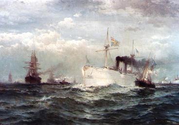 Keywords: The White Squadron's Farewell Salute to the Body of John Ericsson, New York Bay, August 23, 1890.jpg It depicts USS Baltimore Cruiser 3 departing New York Harbor to return the remains of John Ericsson to his native Sweden Note the Swedish ensign flying from the ship's foremast http //www history navy mil/photos/images/kn10000/kn10851c htm U S Naval Historical Center http //www history navy mil/photos/images/kn10000/kn10851 jpg direct image link Event 23 August 1890 Date of painting 1898 Edward Moran 1829-1901 Oil on canvas 36 by 54 U S Naval Academy Museum Collection signed and dated by the artist 1898 Gift of Paul E Sutro 1940 PD-Art 1890 in New York City Paintings of New York City Moran People with flags in art 1898 paintings USS Baltimore C-3 John Ericsson Edward Moran |