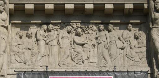| Keywords: Theater Mittelfries (Lübeck).JPG  Apollo und die neuen Musen Fries von Georg Roemer 2006-04-17 own assumed Tic-hl~commonswiki selbst aufgenommen Georg Roemer Sculptures in Lübeck Friezes in Germany Theater Lübeck Taken with Casio Exilim EX-Z120 |