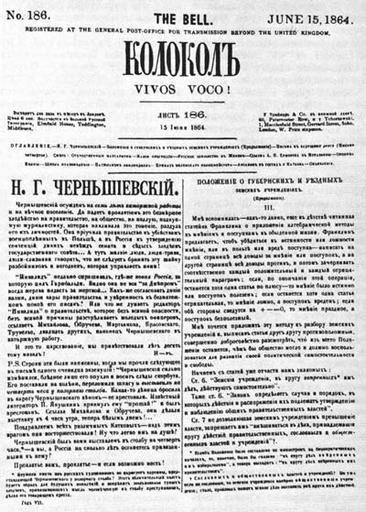 Keywords: TheBell N 186.jpg en Russian newspaper Kolokol The Bell 1864 186 ru Газета Колокол 186 1864 год http //lit 1september ru/articlef php ID 200701206 А И Ге цен П Ога ёв 1864 PD-old Kolokol Title pages from Russia 15 June Newspapers of Russia 1864